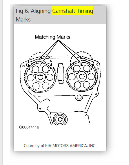 Could you please ensure that the timing marks on your crankshaft and camshaft sprockets are aligned up? In the diagrams down below I have included diagrams of an exploded view of the components of your vehicles timing system as well as how to align your crankshaft and camshaft sprockets correctly. Please check it out and get back to us with what you are able to find out.