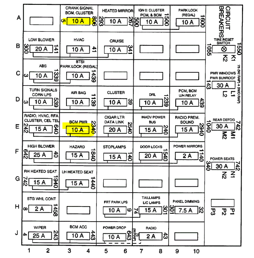 See pics below. Note: I had to cut the page in two, so it is readable for you. I did overlap them so you can follow from one to the next. Also, pic 3 shows what to check in the under-hood fuse box and pic 4 shows the interior fuse box.