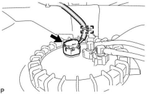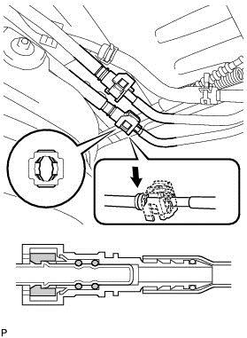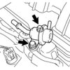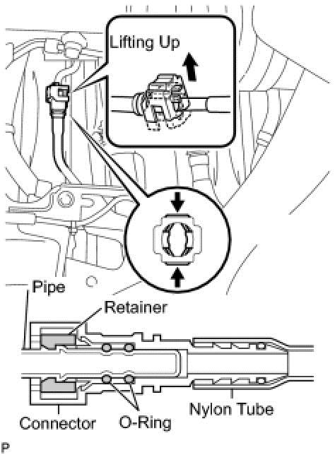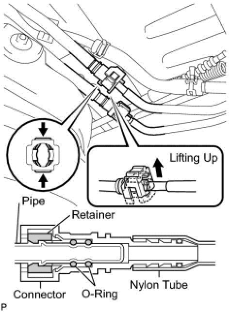 (b)Pinch and pull the return tube connector to disconnect the fuel tank return tube connector from the pipe.