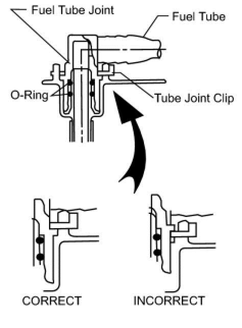 * After installing the tube joint clips, check that the fuel tube joints have not been pulled off.