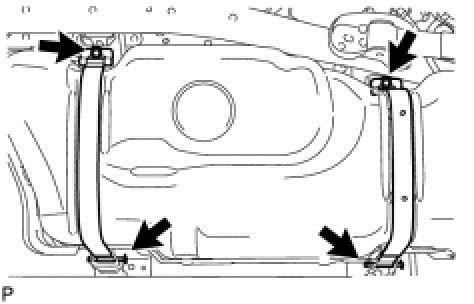 (f)Remove the 2 bolts, 2 clips, 2 pins and 2 fuel tank bands.