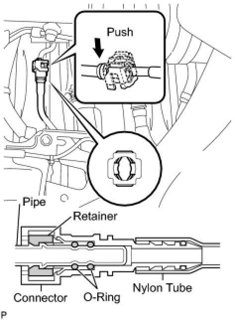 * Do not allow any scratches or foreign matter on the parts when disconnecting them, as the fuel tube joint contains the O-rings that seal the plug.