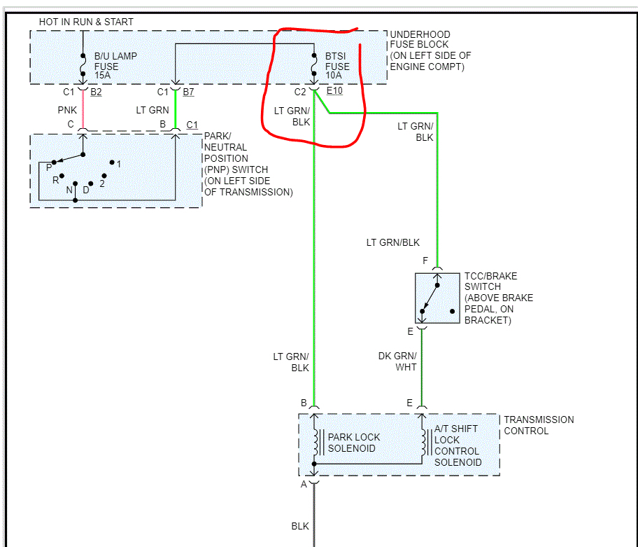 Stopped and got gas at the gas station. I came back out to the car to leave and it would not start and would not come out of park. It doesn't even try to start. But all the electrical works lights, radio. Bought a new battery and still doesn't crank or come out of park. It did have a blown ign fuse, I also replaced it and still nothing.