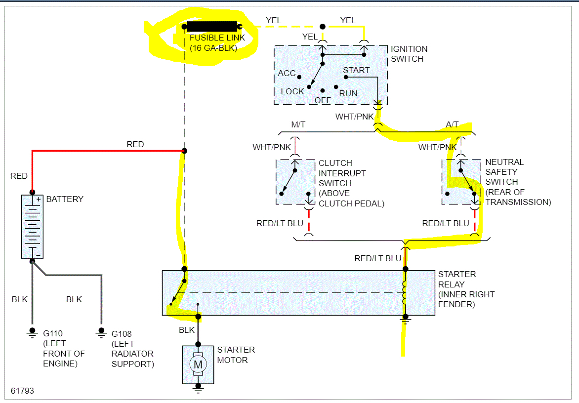 First, I attached the wiring schematic for the starter circuit below. The first thing that caught my eye was a fusible link that could be causing an issue. If you look at pic 2, I highlighted 3 fusible links from the starter solenoid. Disconnect one at a time and check for continuity through the link to see if it is good.