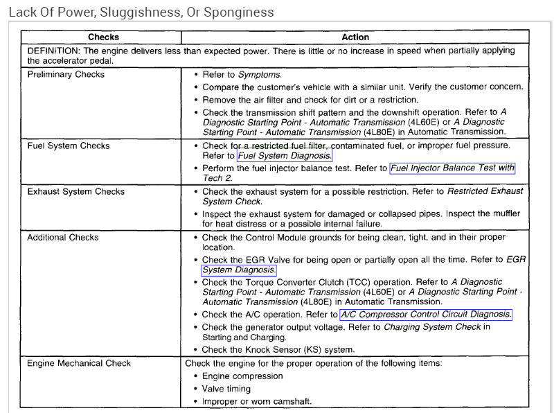 The Bank 1 sensor 1, purple wire is the Signal wire, and the other meter lead on a Ground location, the front sensors should have a voltage reading fluctuating from around 0.2 volts to 0.8 volts. So around a 0 to 1volt swing. If either of the front sensors are not fluctuating with these voltage readings with the engine warm, that's an issue. The Bank 1, 2 sensor 2's reading should be a steady voltage, usually around 0.5 to 0.7 volts. If either of the rear sensors have a voltage level that is stuck low, around 0.1 volts or even 0 volts. These types of readings will cause the ECM to see a lean exhaust when it might not be a lean exhaust. If the rear oxygen sensors are fluctuating the same as the front sensors, that is a sign that the Catalytic Converters have failed. From what you are describing, it does sound like a restricted exhaust. The converters fail for a number of reasons, but when they do, you will get spark plugs covered in soot. The engine will not be able to take in air because the exhaust cannot escape. You might also hear a hissing noise. Unbolting and dropping the front the Converters can reveal the issue if you don't have a way to do a back pressure test. Even dropping the front of one of the converters you will notice a huge difference in power right away. It will be loud, but when the exhaust can escape, the engine can breathe again.