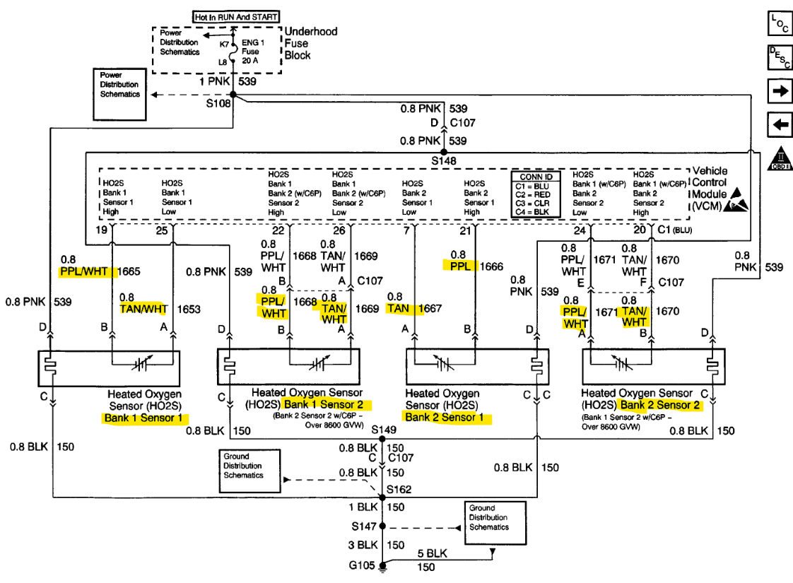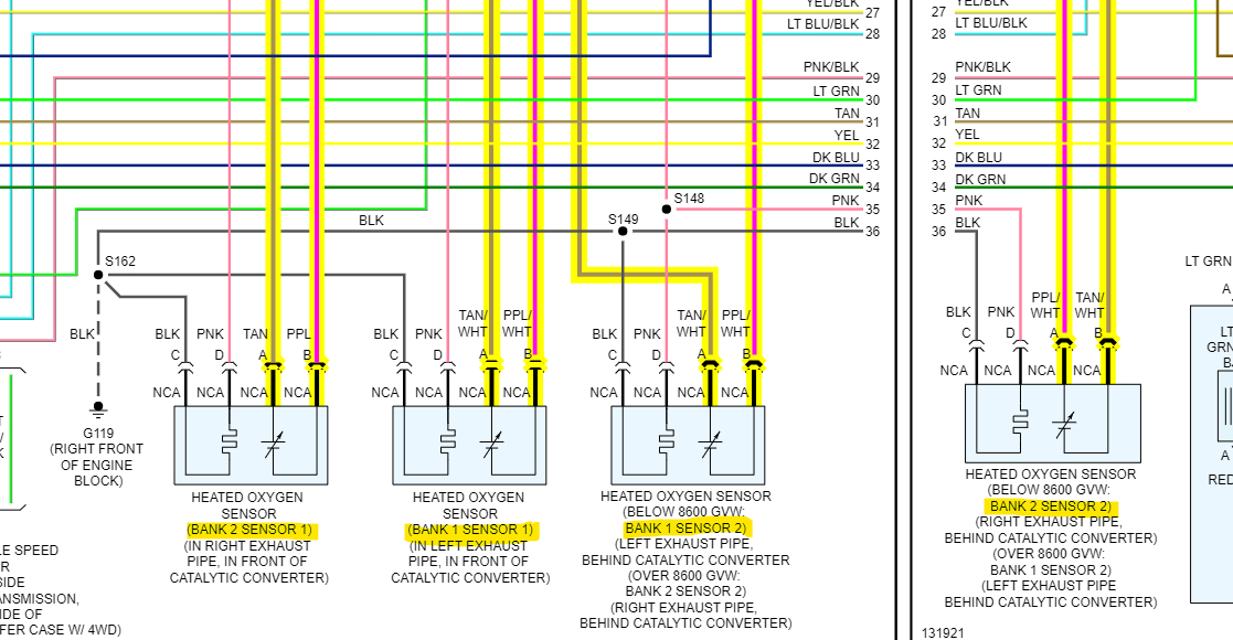 These are the wiring diagrams for all 4 Oxygen sensors, the 1st diagram is the same as the 2nd. The 2nd is just the OEM manufacturer diagram.
